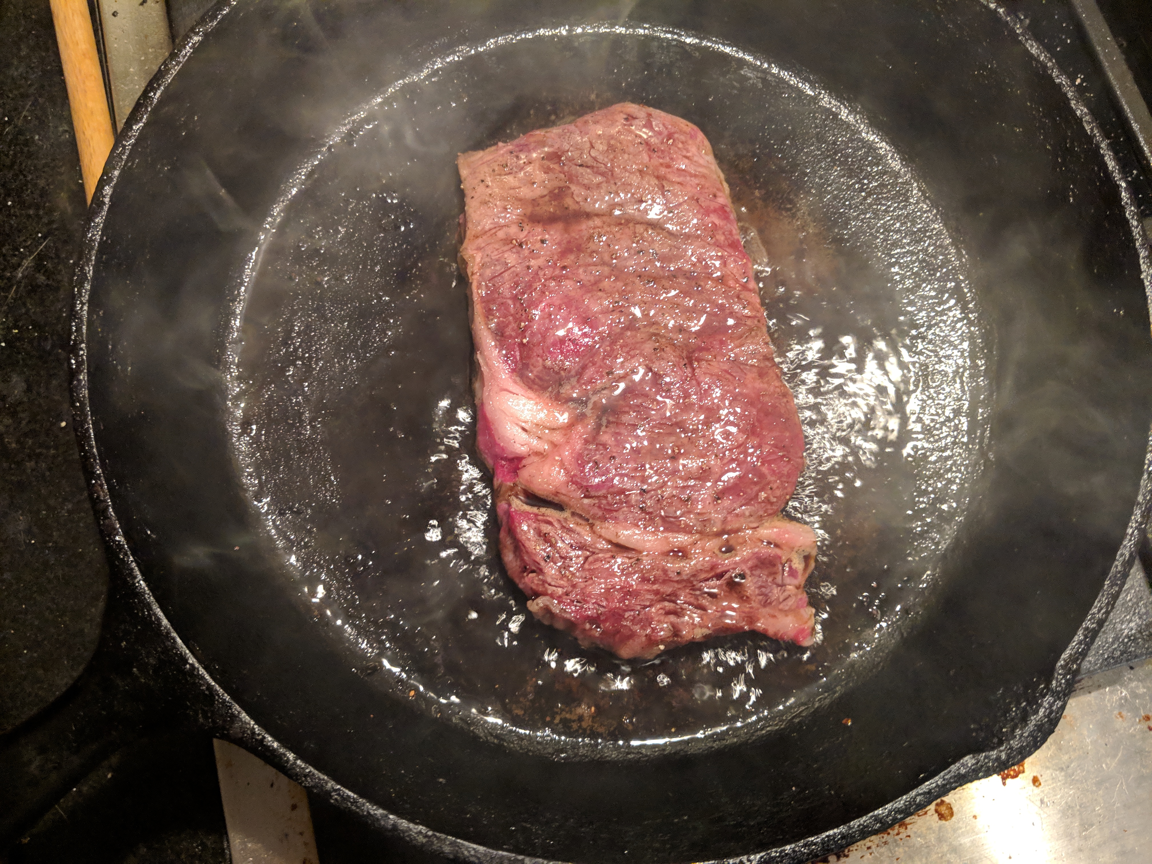 You’ll note that I haven’t included times in this. I can’t. The cooking time depends on how hot your stove top gets, what kind of pan you’re using, and how thick your steak is. You just have to pay attention to it as it cooks.