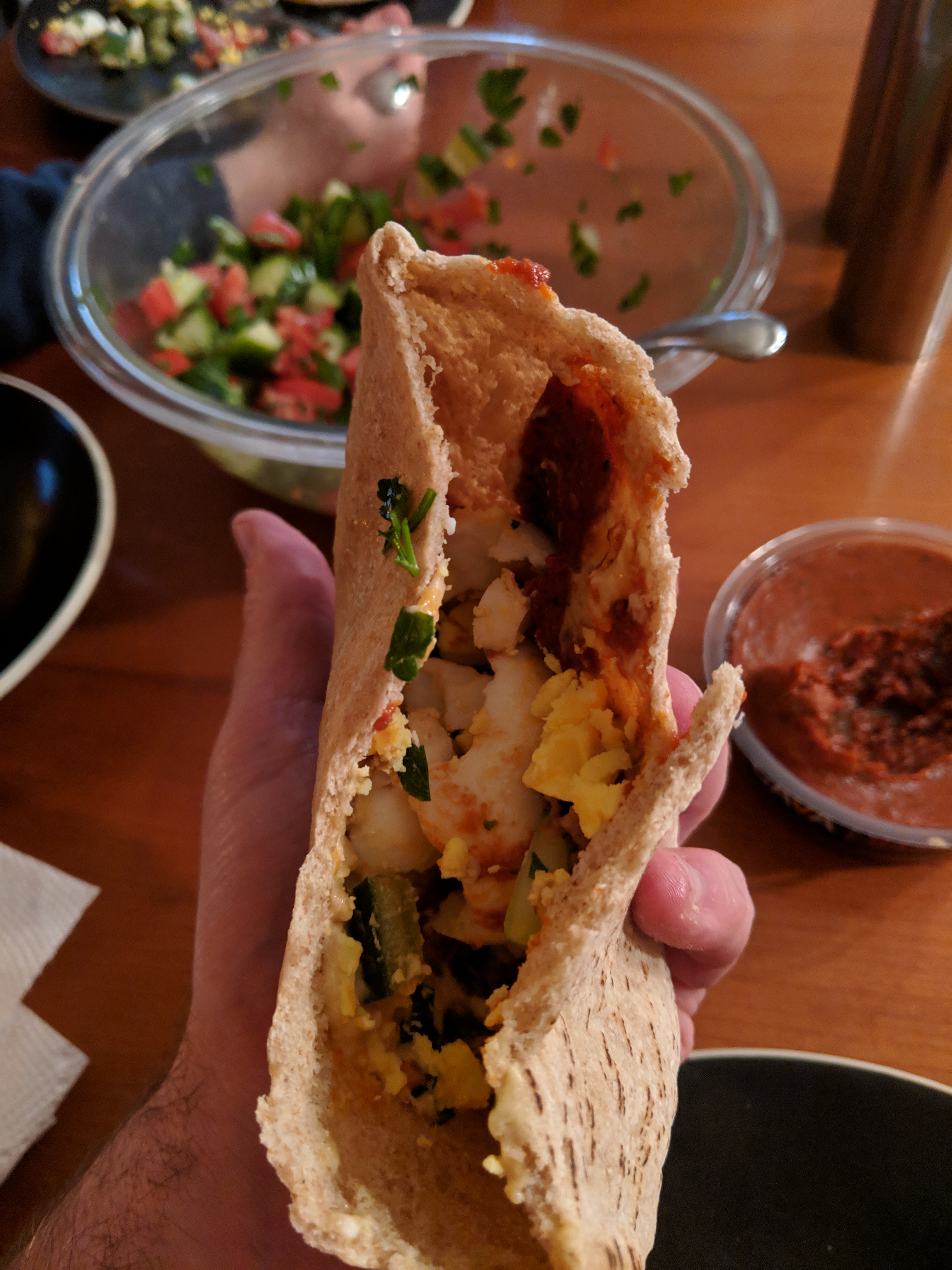 Anyhow… According to The Google it’s origins are in Iraq, where it’s street food. I’ve certainly never seen it in the US.