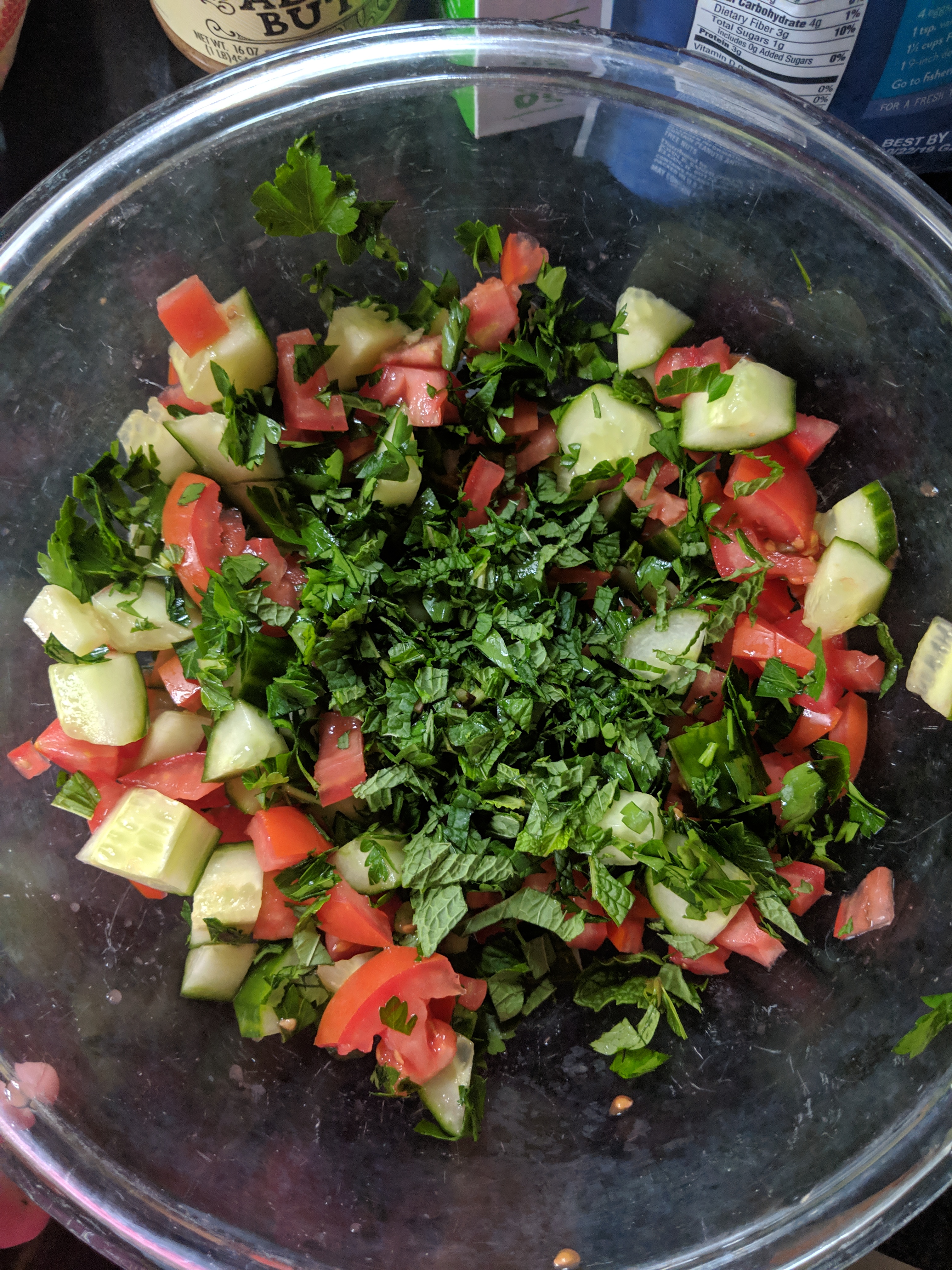 There are thousands of variations on a middle eastern salad. I’ve been making this for thirty plus years. I like this way, but there’s lots of other ways.