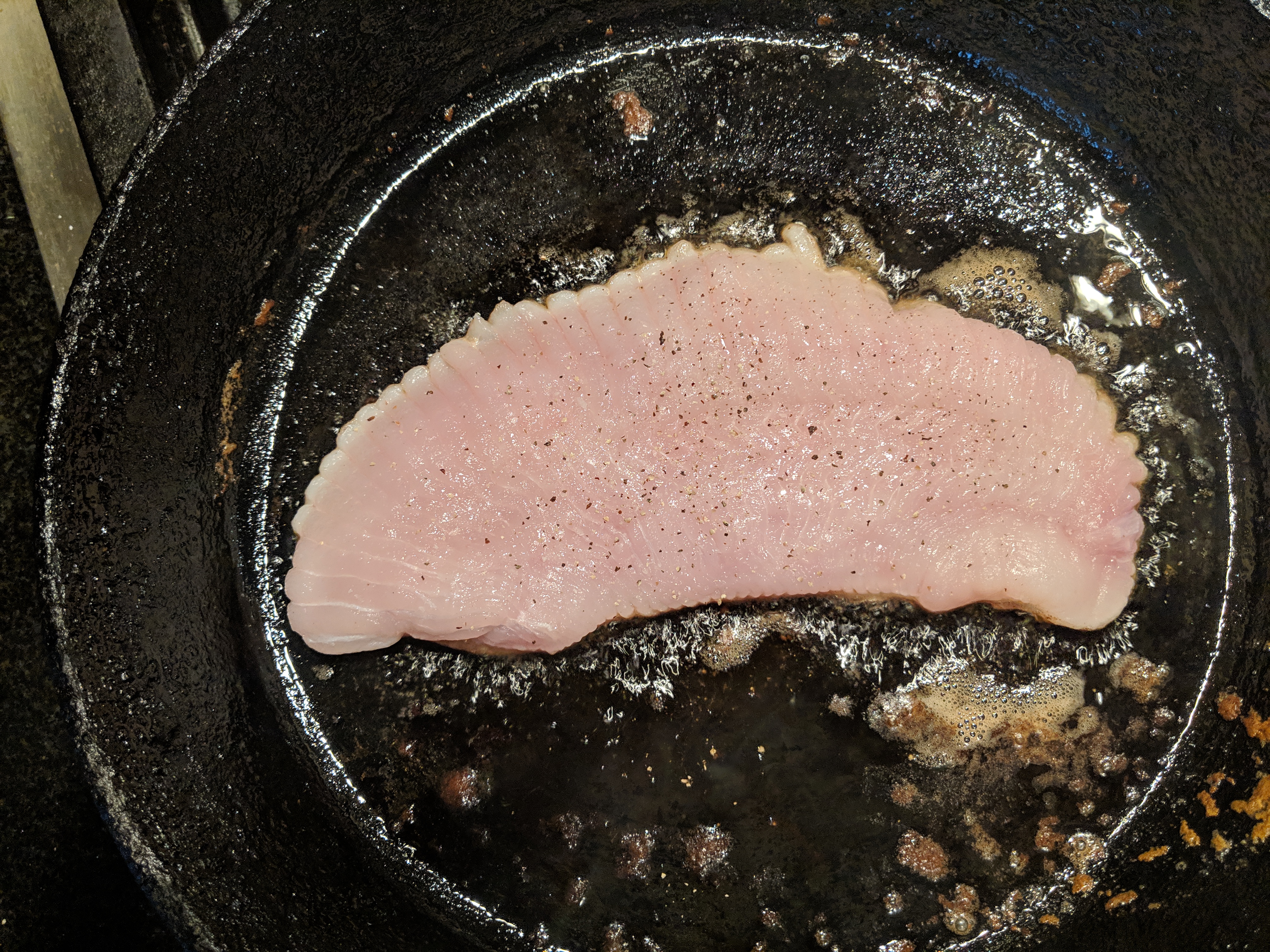 Carefully turn it over (a fish spatula is really helpful for this, this is a very delicate piece of fish).