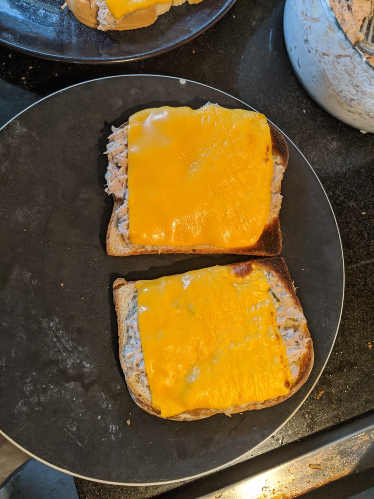 Well, it was their favorite sandwich a week or so ago. Like everyone else, we’re in semi-quarantine to avoid the COVID-19 virus. I am working remotely, their mom can’t work remotely but she is working, so I’m working at home and home schooling. I’m making lunch for them every day (they take lunches to school every day, but making them during a lunch break is different than making them in the morning for some reason). I introduced them to tuna melts a couple of weeks ago and they liked them so much that they ate them every day that week. They’ve moved on to quesadillas, which is an old standby for us, but the tuna melts were a hit for a while.