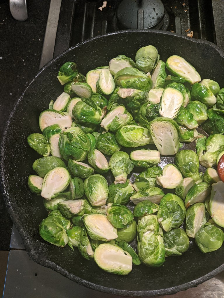 You’ll need a cast iron pan, or some other oven safe pan (you have one of those, right? – by now you really should if you’ve been following this blog for a while. If you don’t, skip the Brussels sprouts for the moment and go to your nearest Goodwill and find one, it will probably cost the same as the Brussels sprouts).